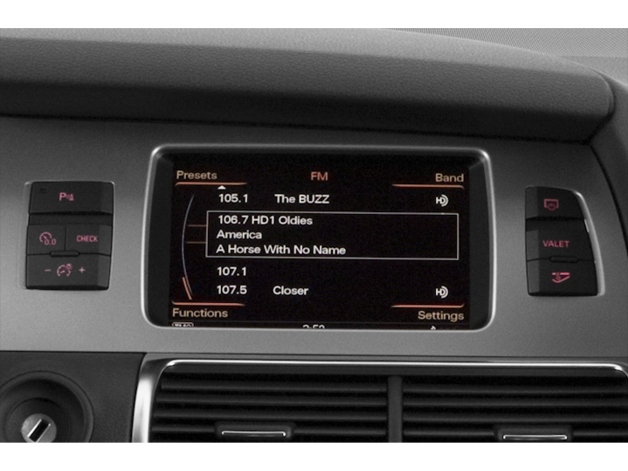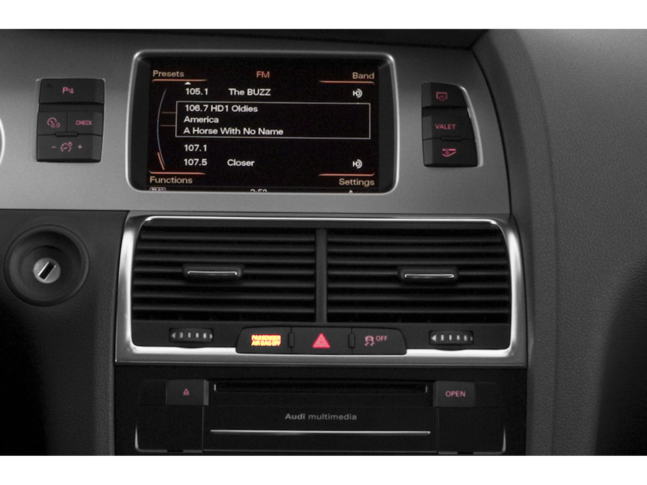 - Radio: Audi Music Interface w/iPod Cable -inc: 1 CD, preparation for Bluetooth® mobile phone, AM/FM radio, SIRIUS satellite radio, Audi Sound System, 11 speakers including front center speaker and subwoofer in the rear, 180 watts, 7-channel amplifier
