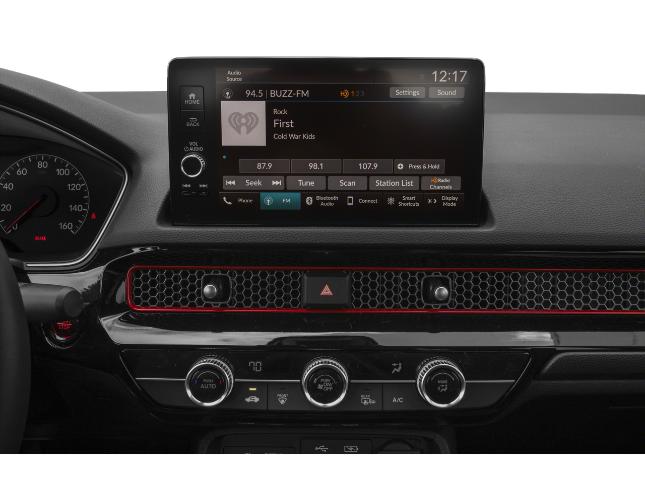 - Radio: Bose Premium Sound System -inc: 12 speakers w/subwoofer, 9" color touchscreen, wireless Apple CarPlay compatibility, wireless Android Auto compatibility, SiriusXM, HD Radio, Bluetooth® HandsFreeLink, Bluetooth® streaming audio, HondaLink, SMS text message function, Speed-sensitive Volume Compensation (SVC), Radio Data System (RDS), 2.5-amp USB smartphone/audio interface (1 front console port) and 2.5-amp USB charging port (1 front console port)